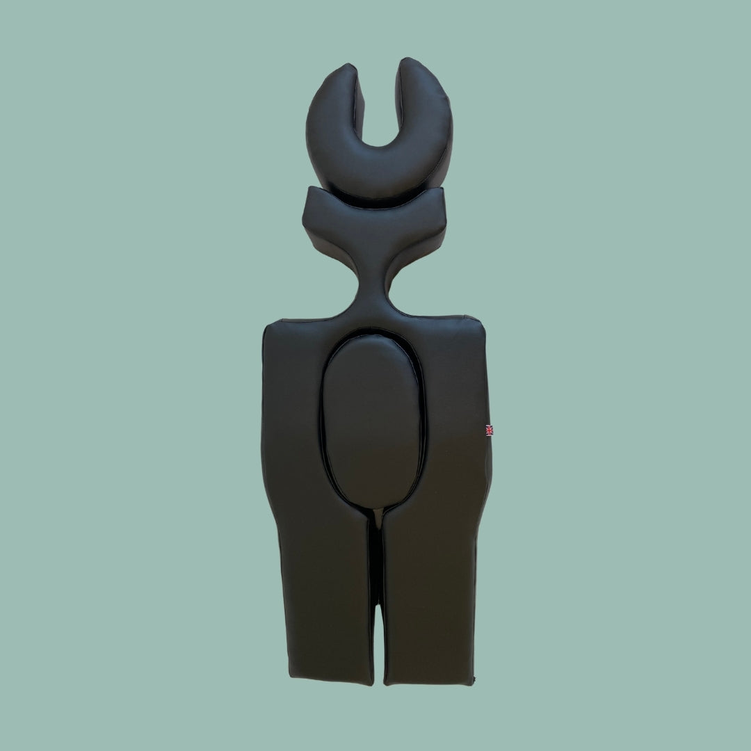 This pillow/bed adaptation is used by pregnant women when lying on their front/stomach. It can be used in the birthing process at home or in a maternity ward or when women are trying to lie on their front in comfort. The stomach and breast cut-outs relieve pressure and ease the strain on the back, neck and spine.
