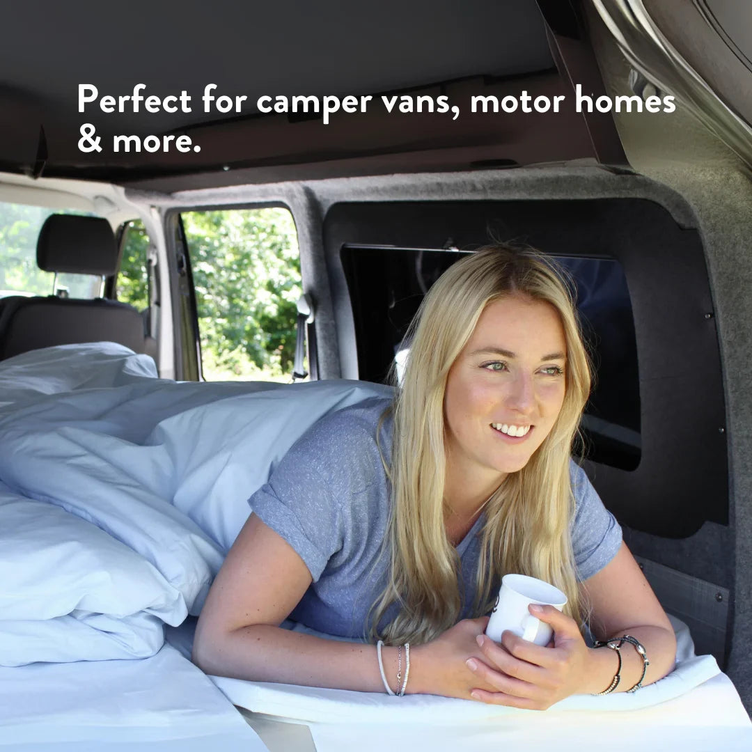 Going camping or have an uncomfortable caravan, motor home, camper van or van conversion bed? We have the perfect solution to help you drift off into a peaceful nights sleep no matter where you are.