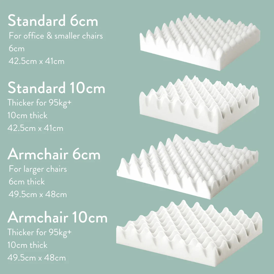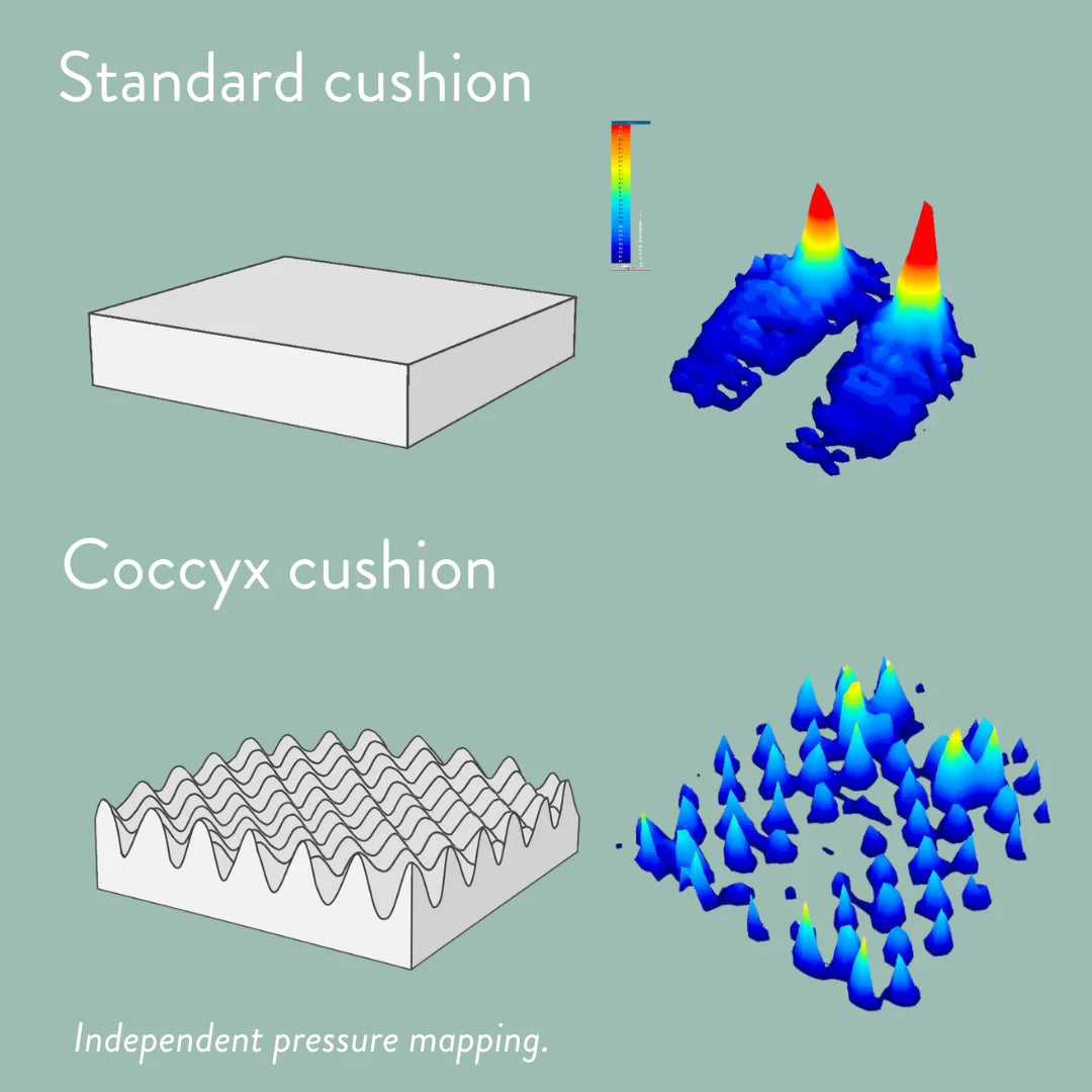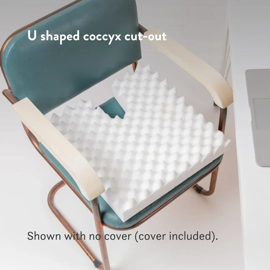 The Coccyx Cut Out Cushion relieves pressure at the base of the spine. The high density, profiled foam helps eliminate numbness & relieves pressure points.
